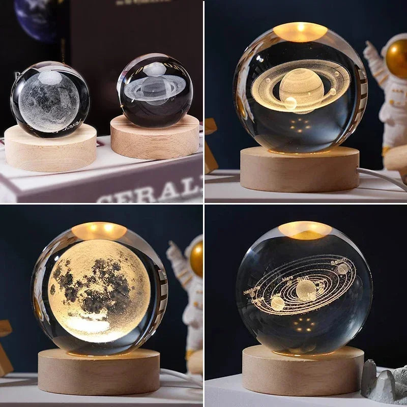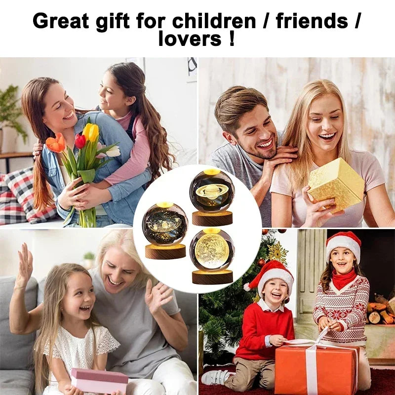 Features: 1.Exquisite 3D Laser Engraved Crystal Ball: Our crystal ball night light comes in four different styles, featuring advanced 3D laser engraving techniques. The 3D crystal ball LED night light showcases various themes like the solar system, ensuring that the crystal maintains its brilliance even after long-term use. Perfectly crafted, these 3D crystal ball decorations create a romantic ambiance for both children and adults. The LED-lit wooden base adds a warm and bright glow, making it a stunning centerpiece in any room. Note: |